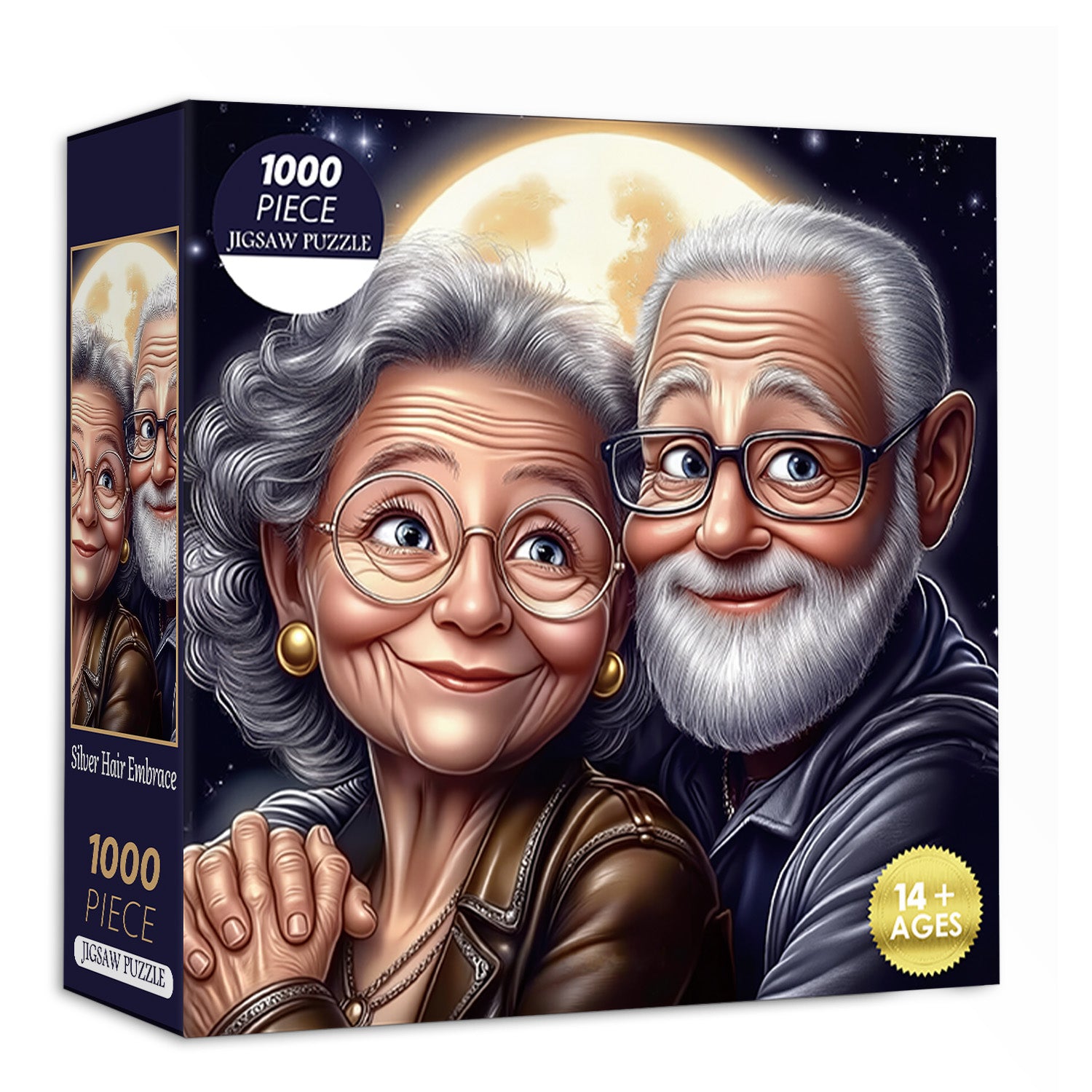 Wir haben jedes Stück sorgfältig gefertigt, um die Zärtlichkeit dieses Augenblicks zu würdigen. Mit hochwertigem, recyceltem Puzzlekarton und reich pigmentierten, lichtbeständigen Tinten fangen wir die sanften Falten ein, die Geschichten vom Lachen erzählen, das sanfte Funkeln in ihren Augen, die zarte Textur silberner Haare und den magischen Schimmer des sternenklaren Nachthimmels dahinter. Die matte, blendfreie Oberfläche verstärkt die Wärme und Tiefe der Szene und sorgt für ein zufriedenstellendes, herzerwärmendes Bauerlebnis, das in jedem Stück die Liebe zelebriert.