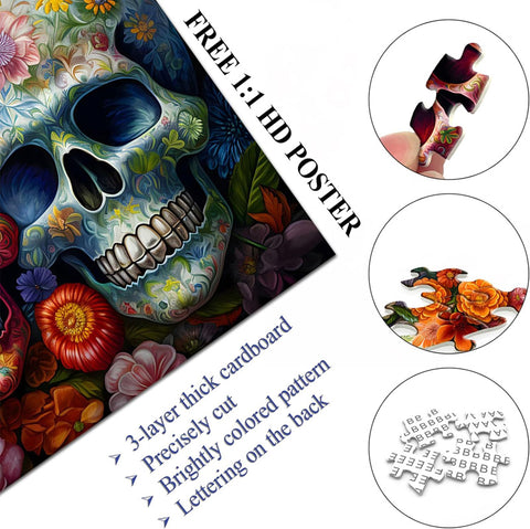 【Zuckerschädeldekor】 Dieser Tag des toten Blumendrätsels ist ein atemberaubendes dekoratives Stück. Dieses Puzzle mit Skelettpuzzle huldigt die Verstorbenen, während sie Leben und Erinnerung feiert. Wo immer es platziert ist, bringt es einen einzigartigen und schönen Tag des toten Ambiente in den Raum.