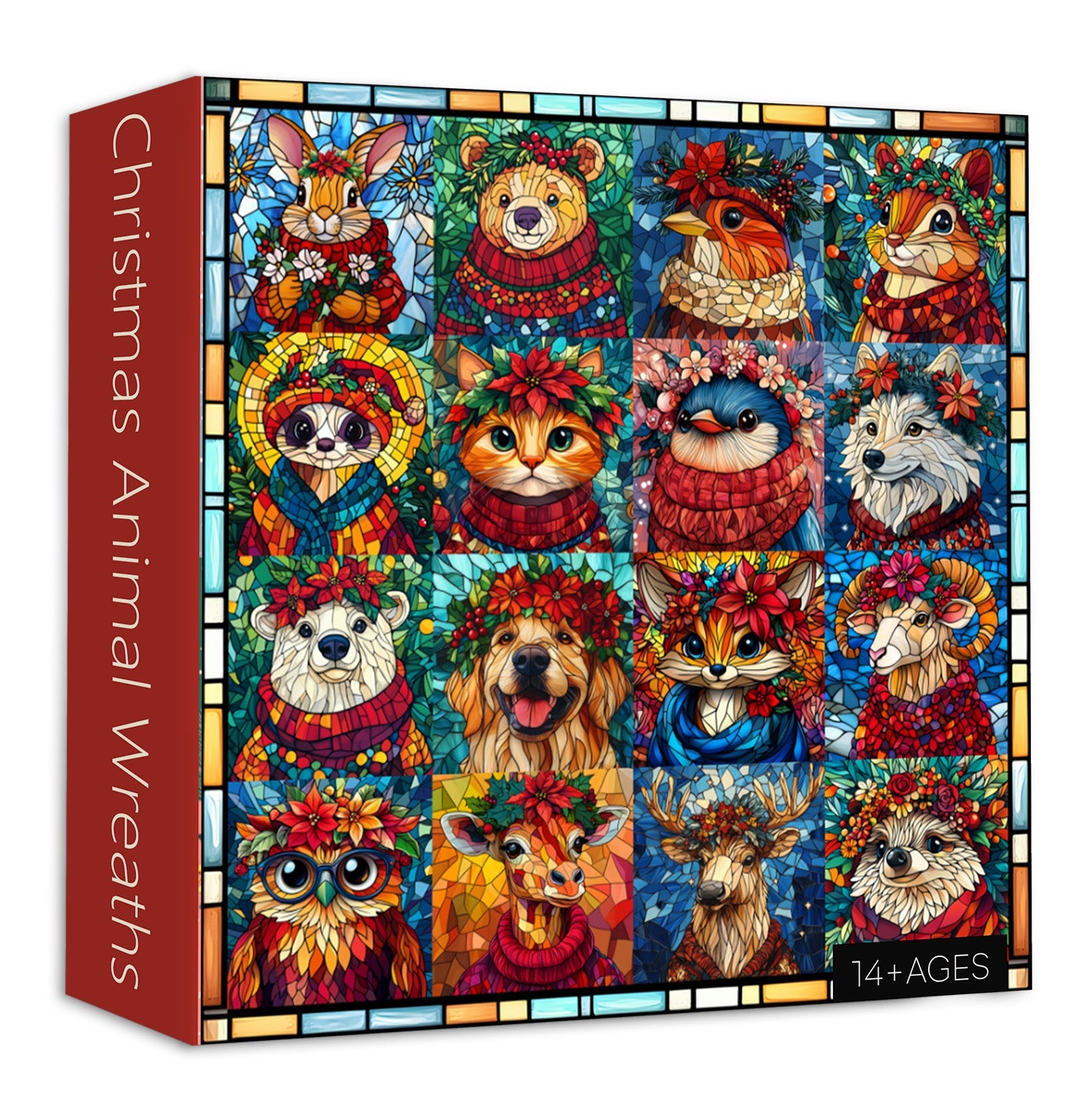1*Weihnachtstierkränze Puzzles 1000 Stücke