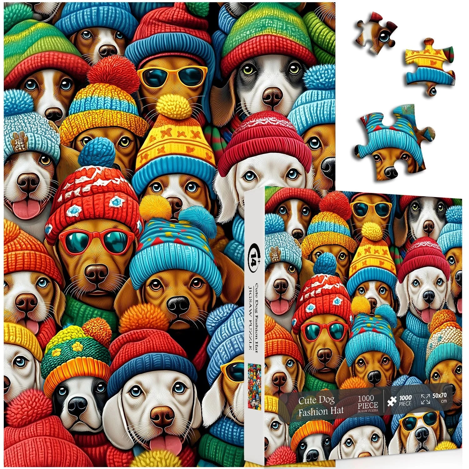 1*Cute Dog Fashion Hat Jigsaw Puzzle 1000 Pieces