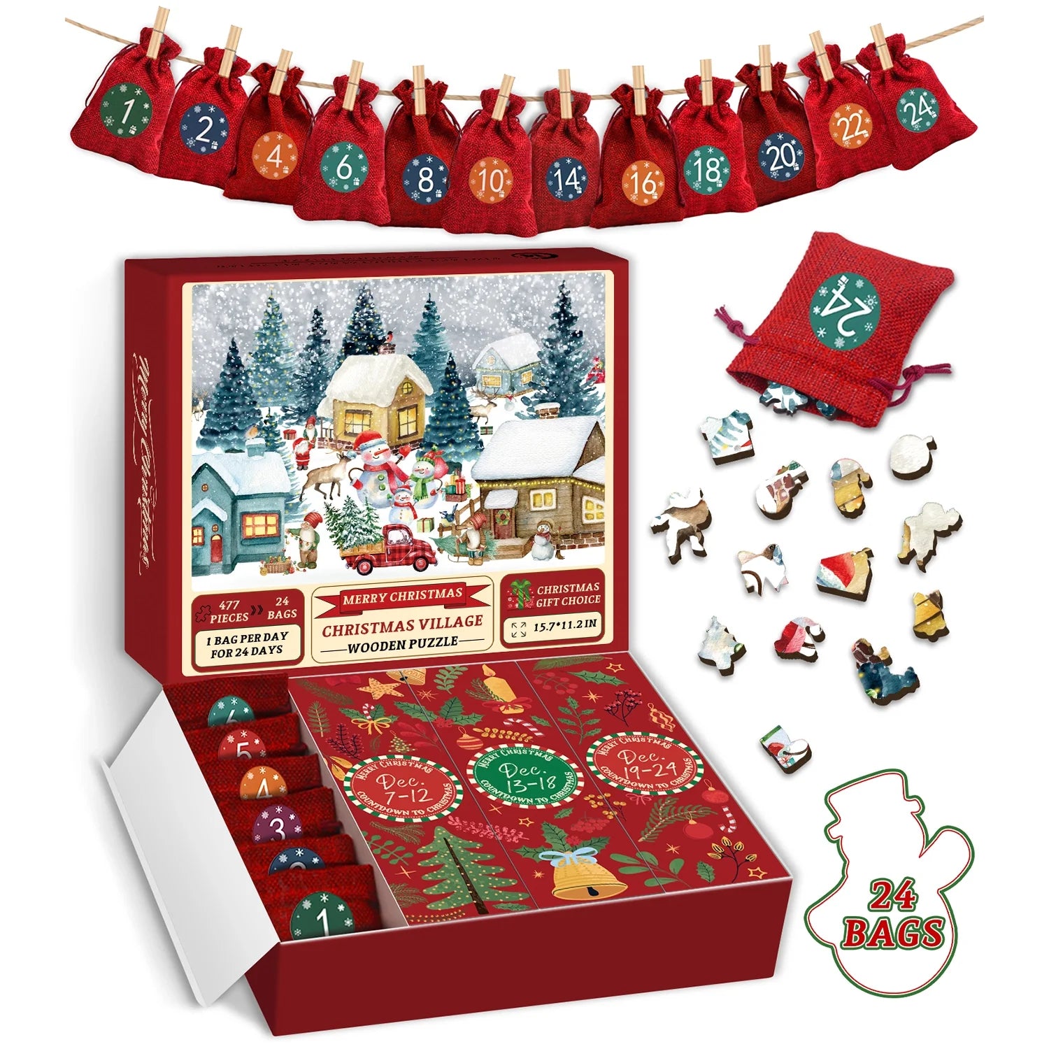 2024 Advent Calendar Puzzle: The unique puzzle contains 24 numbered woven bags, totaling 477 pieces. 🧩🎁 Your goal is to complete one piece of the Christmas puzzle every day between December 1 and December 24. When you finish your 24th bag on Christmas Eve, congratulations! You've completed all 477 puzzles. Through each piece of the puzzle, you will gradually reveal the complete Christmas theme of the big picture, as if every day in the countdown to Christmas to get a special surprise. 🎅🎁🧩